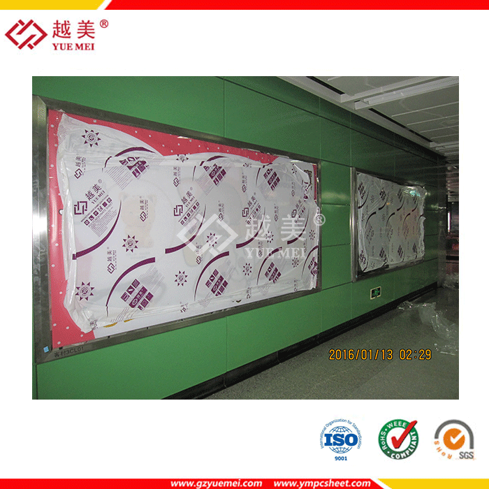 從2015年底到2016年初,廣州地鐵各個(gè)地鐵站內(nèi)的廣告燈箱面板都陸續(xù)更換上了我們廣州越美的透明PC耐力板,現(xiàn)在,只要你進(jìn)入廣州市內(nèi)任何一個(gè)地鐵站,都可以看到我們?cè)矫繮C板的身影,不管你看或不看,我們?cè)矫繮C板就在你身邊。